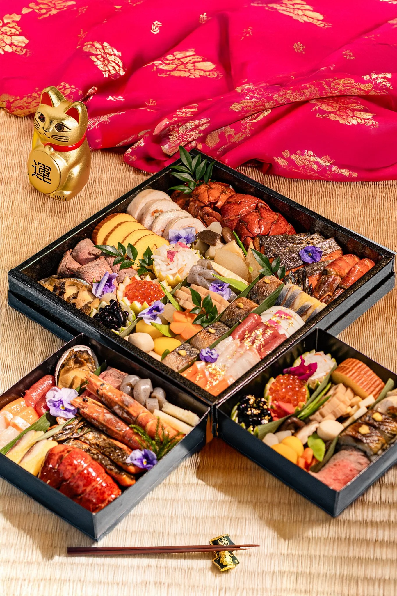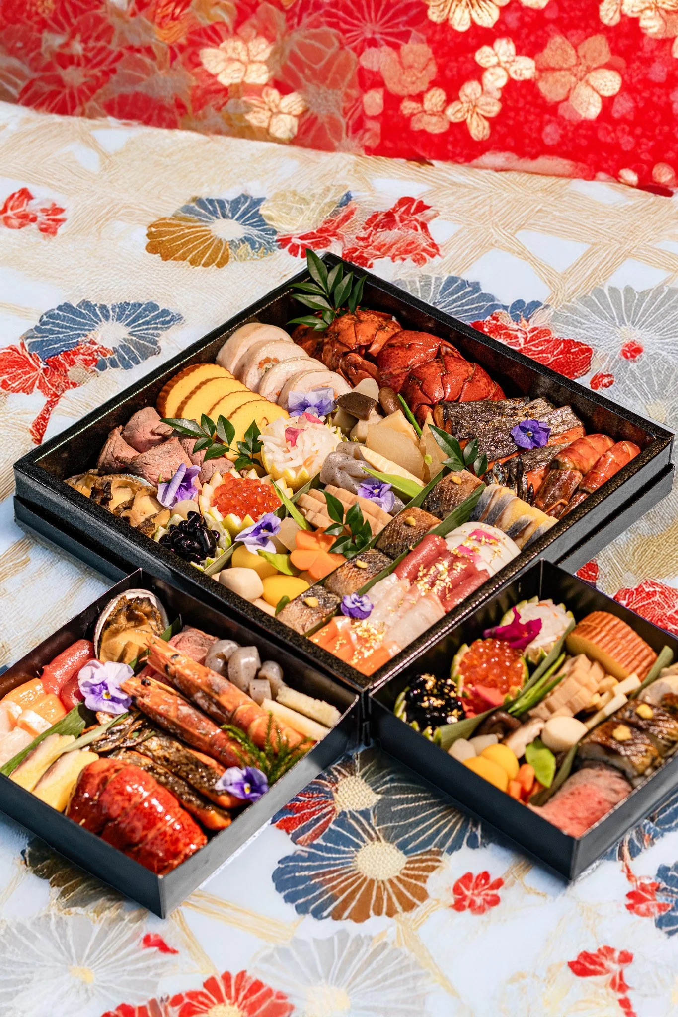 Osechi Ryōri (おせち料理) is the traditional Japanese New Year’s meal, elegantly arranged in beautifully decorated, boxes known as jubako. This custom dates back to the Heian period (794–1185), when offerings were prepared to welcome the gods at the start of the year and to give families a few days of rest from cooking. Hello Nori proudly honours this tradition, offering three beautiful options to pre-order to start your new year!